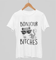Valkoiset unisex T-paidat "Bonjour bitches"