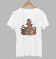 Valkoiset unisex T-paidat "Horse sauna"