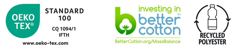 Koostumus: 80 % puuvillaa – 20 % GRS-sertifioitua kierrätettyä polyesteriä