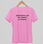 Vaaleanpunainen unisex T-paita "Terapeuteillani on turkkia ja kuorta"