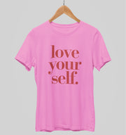 Vaaleanpunainen unisex T-paita "Love yourself"
