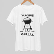 Valkoiset unisex T-paidat "Varoitus! Isi grillaa"