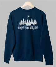 Sininen unisex collegepaita "Forest is my therapist"