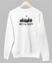 Valkoinen unisex collegepaita "Forest is my therapist"
