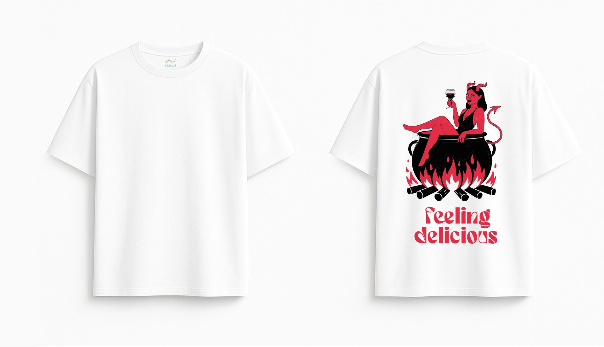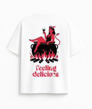 Oversized white T-shirt "Feeling delicious"