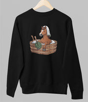 Musta unisex collegepaita "Horse sauna"