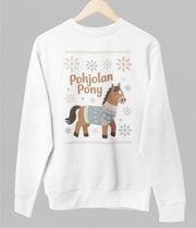 Valkoinen unisex collegepaita "Pohjolan poni"