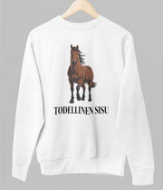 Valkoinen unisex collegepaita "Todellinen sisu"